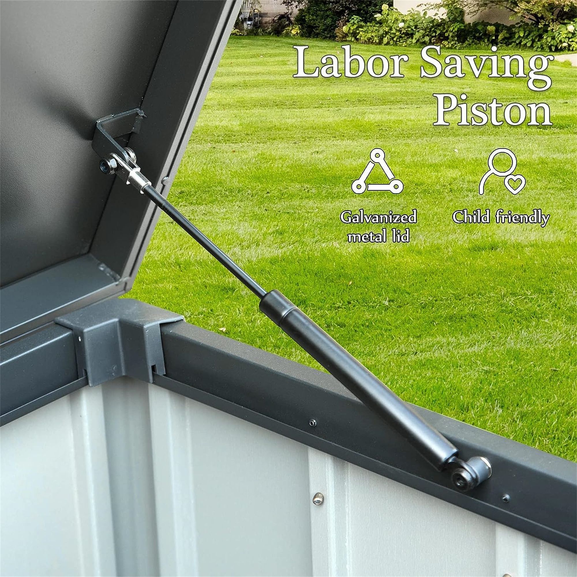 [EASY TO USE] Outdoor storage container has portable side handles and mobility rollers for moving. Also, it has labor-saving pistons for extra support and strength.