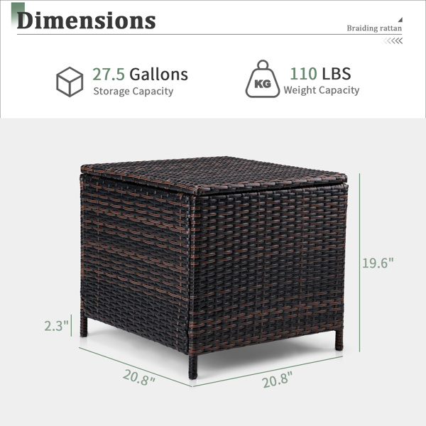 Enhance your outdoor space with the Outdoor PE Wicker Side Table with Storage. This versatile piece serves as both a stylish side table and a convenient storage container, offering a practical solution for organizing furniture covers, toys, gardening tools, and more. It features an all-weather handwoven PE rattan design that adds a touch of elegance to any patio or garden. The sturdy steel frame ensures durability and stability, while the 27-gallon storage capacity provides ample space for your belongings.